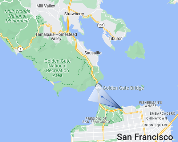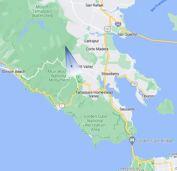 Mt Tam East Peak looking south to Headlands, Presidio and Lands End