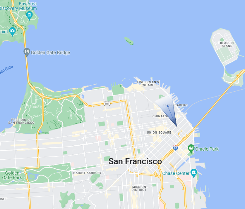 San Francisco - rotates from 101 split entering city, and Civic Center, to other places west, from a tall point downtown