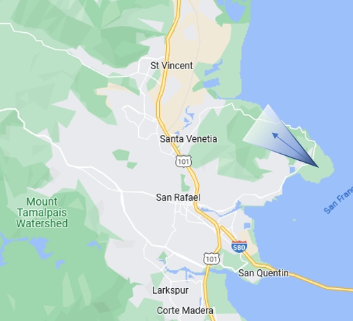 Civic Center on the right and the ridge above Lucas Valley